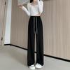 145cm Petite Women's High-Waisted Gray Wide-Leg Pants - Versatile Soft Autumn/Winter Casual Sportswear