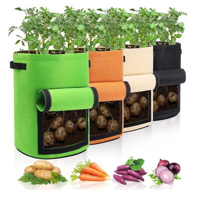 Non-Woven Felt Grow Bag Large Diameter Potato Planting Bag Seedlings Growing Bucket with Window for Vegetables Strawberries