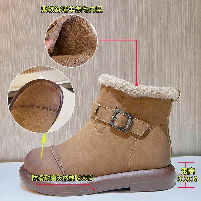 Retro Snow Boots Women's Winter New Women's Low-heeled Short Boots Fleece Warm Women's Boots Casual Versatile Boots