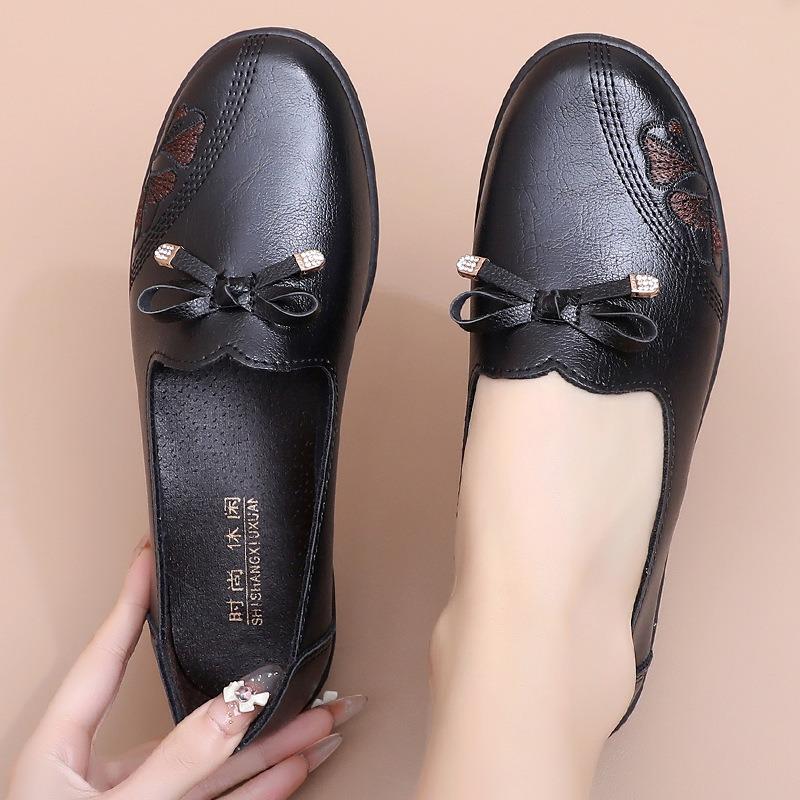 Spring New Shoes Soft Sole Single Shoes Spring and Autumn Medium Leather Shoes Flat Non-slip Elderly Middle-aged and Elderly Women's Shoes