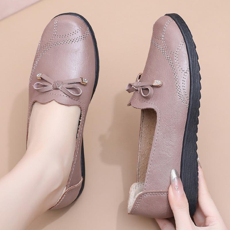 New Spring Shoes Single Shoes Soft Sole Leather Shoes Medium and Old Women's Shoes Flat Non-slip Spring and Autumn Elderly Shoes