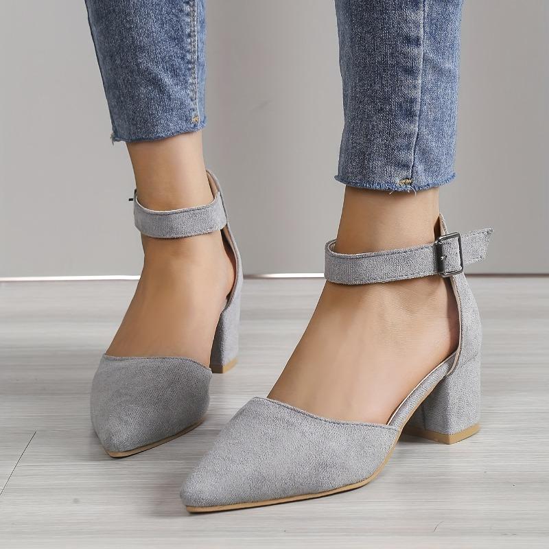 Women's Ankle Strap Chunky Heels, Pointed Toe Solid Color D'Orsay Mid Heels, Versatile
