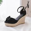 Straw Printing Wedge Heel Sandals Women's Summer Wear New Small High Bow High Heel Sandals