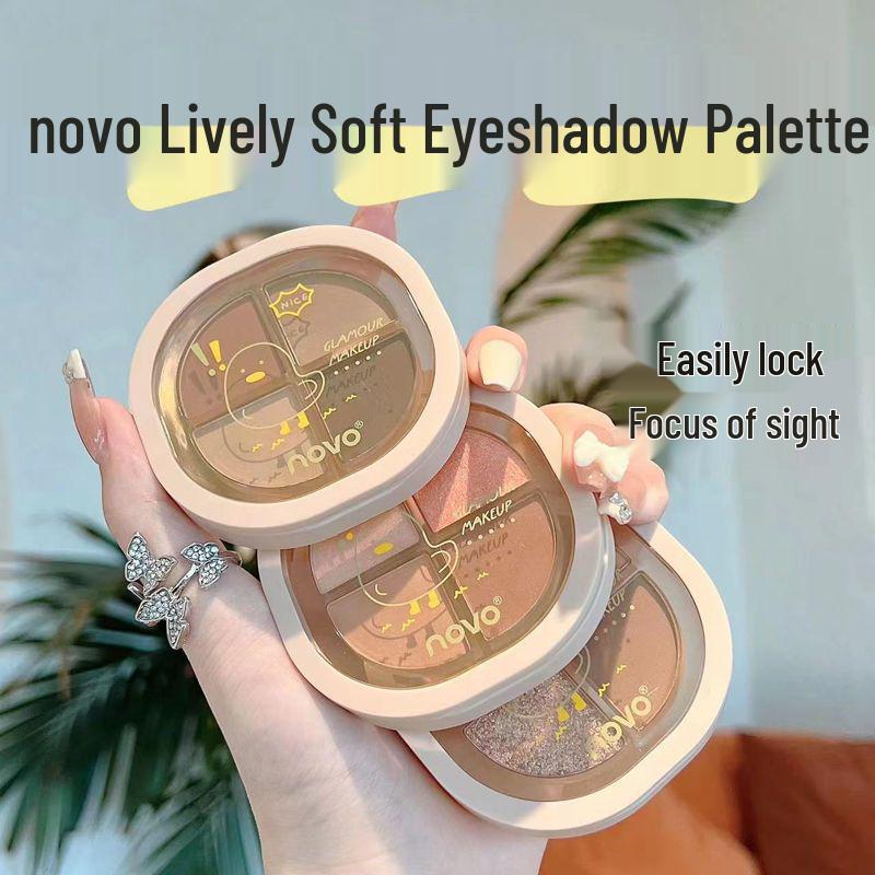 New Four-Color Eyeshadow Palette: High-Shimmer, Waterproof, Sweatproof, Smudge-Free, Perfect for Students.