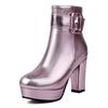 Metallic Red Gold Platform Ankle Boots Women High Chunky Heels Silver Pink Party Dress Lady Winter Plush Punk Buckle Short Boots