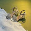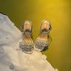 2025 Super Fire Sandals Fashion Rhinestone Word with Silver Thick Heel Square Head Crystal High Heels Women's Summer Skirt