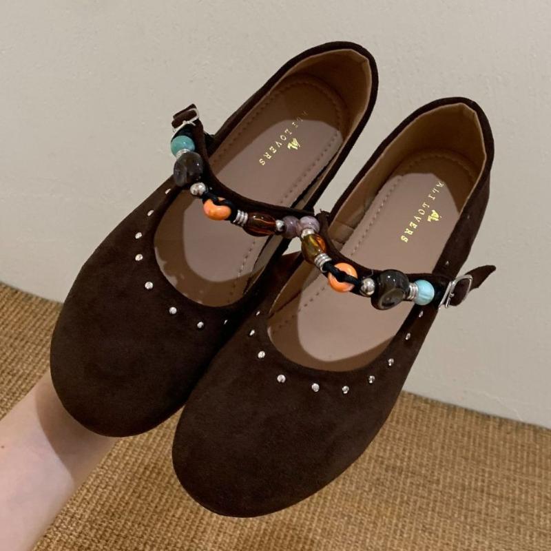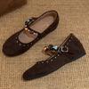 Fashion Retro Faux Suede Ballet Flats Women Luxury Gemstone Metal Rivet Decoration Designer Shoes Cozy Round Toe Shallow Mary Jane Shoes