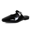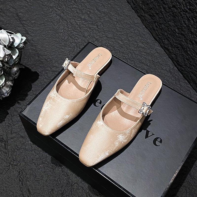 Fashion Designer Printing Silk Slippers Women Square Toe Flat Heel Summer Shoes Ankle Strap Crystal Buckle Mules Woman Flip Flops