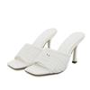 Fashion Comfort Concise Woven Design Brand Slippers Women Fashion Mesh Square Toe Slide Sandals Summer Sexy Open Toe High Heel Sandals
