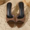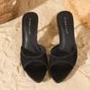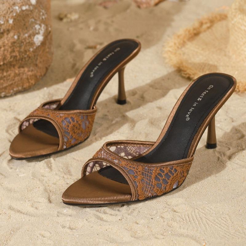 Fashion Comfortable Mesh Brand High Heel Slippers Women Elegant Pointed Toe Embroidery Design Slide Sandals Fashion Banquet Dress Shoes
