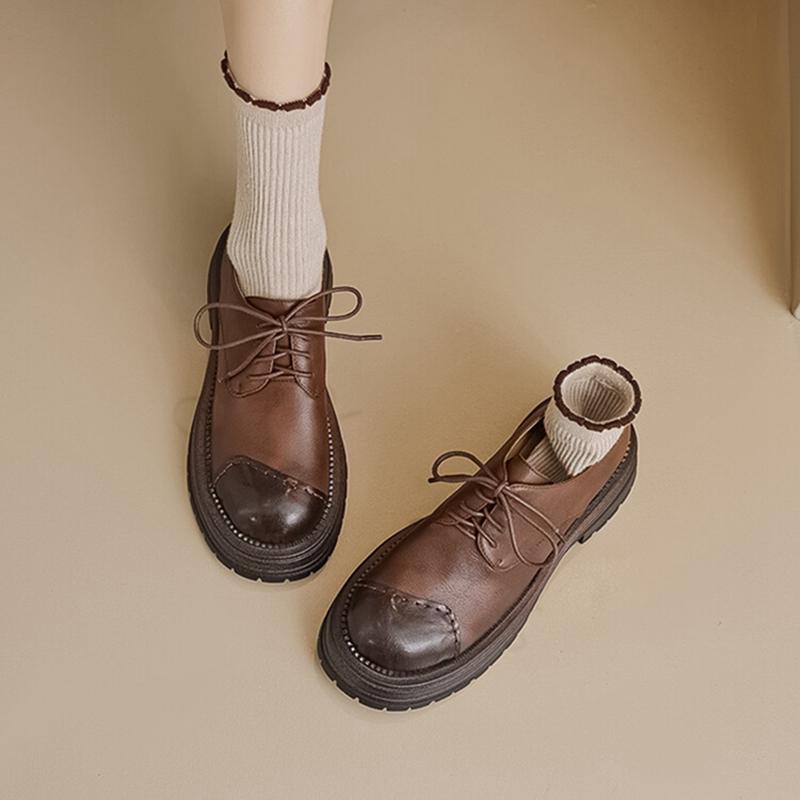 Fashion NEW Spring/Autumn Women Shoes Genuine Leather Shoes for Women Round Toe Chunky Heel Shoes Casual Lace-up Platform Women Pumps