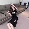 Chic Summer Side-Slit Dress with Drawstring Waist and Ruched Skirt