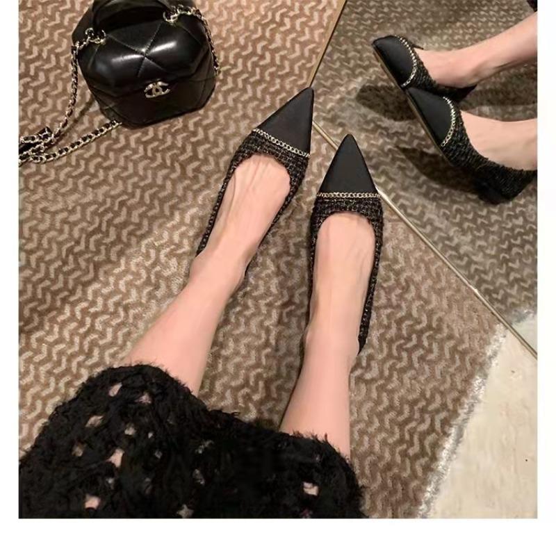 Fashion Flat Shoes for Women's Spring and Autumn New 2025 Spring Autumn Chain Pointed Shallow Mouth Flat Bottom Temperament Single Shoe