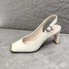 French Square Head High-heeled Sandals Women's Thick Heel Spring and Summer New Commuter Soft Leather Bag Head with Empty Shoes