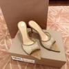 Sexy Open-toed Pointed Rhinestone Sandals Girl 2025 Summer New Mesh Fairy Wind Word with Cool Slippers High Heels
