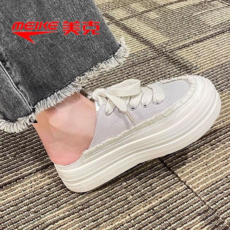 Thick-soled Bag Head Half Slippers Women Wear 2025 New Spring Internet Celebrity Lazy One Pedal Canvas Shoes Slippers Board Shoes