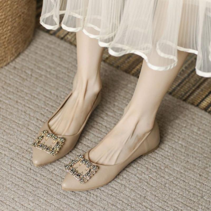 Flat-bottomed Rhinestone Single Shoes Autumn New Pointed Temperament Versatile Soft Sole Shallow Mouth Women's Single Shoes