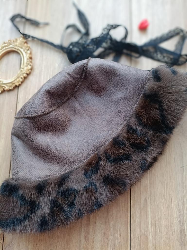 Vintage Leopard Plush Bucket Hat for Women Wide Brim Winter Warm Fluffy Fur Fisherman Cap Female Outdoor Windproof Basin Caps
