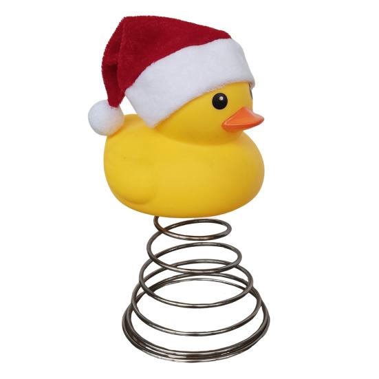 Crafted with durable materials and advanced spring support, this decoration ensures stability and longevity for annual use. The playful yellow duck mounted on a metal spring base adds a dynamic element to your holiday decor, bringing joy and charm to your home.