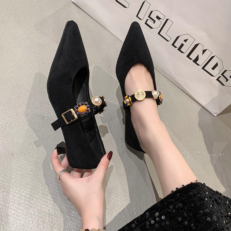 2025 Spring and Autumn New French Pointed Head Temperament Low Heel with Skirt Design Versatile Wine Glass and Single Shoes