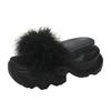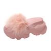 Fashion Women Platform Slippers Feather Chunky Sandals Beach Shoes 8.5CM Wedge Heels Peep Toe Slides Ladies Outside Flip-Flops Woman