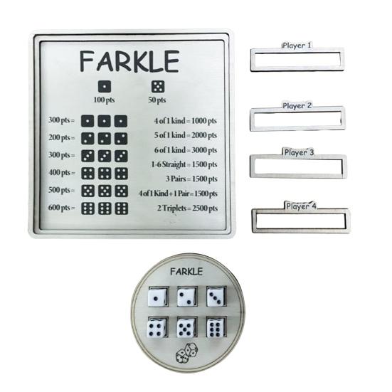 Classic Farkle Game Integration: Designed specifically for the popular dice game Farkle, the tray accommodates six dice with clear numbering and the distinctive Farkle logo. It supports strategic risk-taking and planning by providing a dedicated space to roll and place dice during each turn.