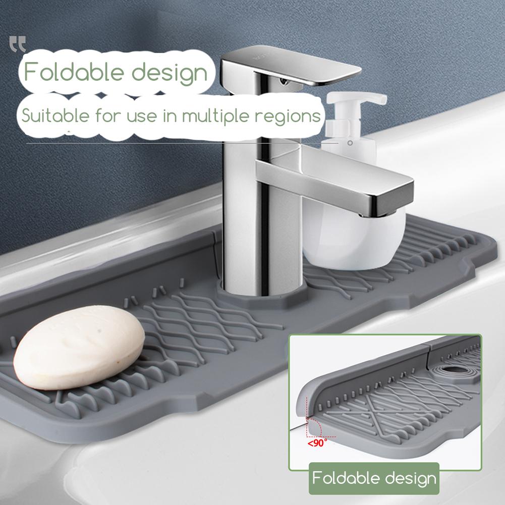 Silicone Sink Faucet Mat Splash Guard for Kitchen Sink Faucet Drain Pad Accessories Sink Protector Mat Draining Pad DIY Cuttable