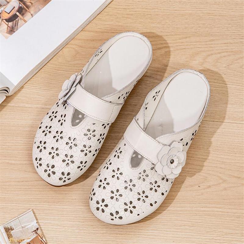 Fashion High Quality Genuine Leather Women's Sandals Women Flat Sandals Retro Mom Shoes Woman Closed Toe Non-Slip Beach Slides Sandals