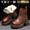 Snow Boots Women's Winter Genuine Leather Wool Cotton Boots Thick Soled Short Boots Warm Cotton Shoes