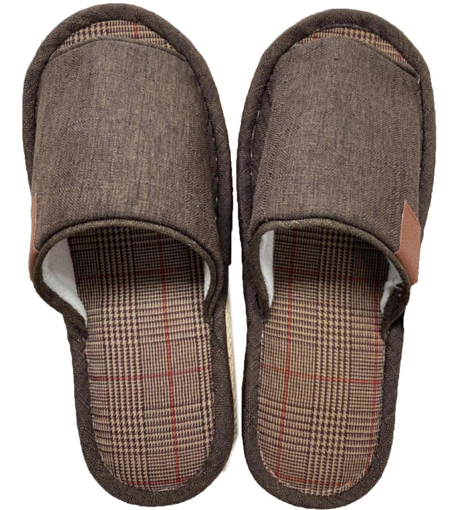 Large Slippers Open Outer Checkered Quiet Indoor Brown Men's (LL, 30cm), Front, Durable, Stitching, Washable, Stylish, Sole, Mesh, Sole, Use,
