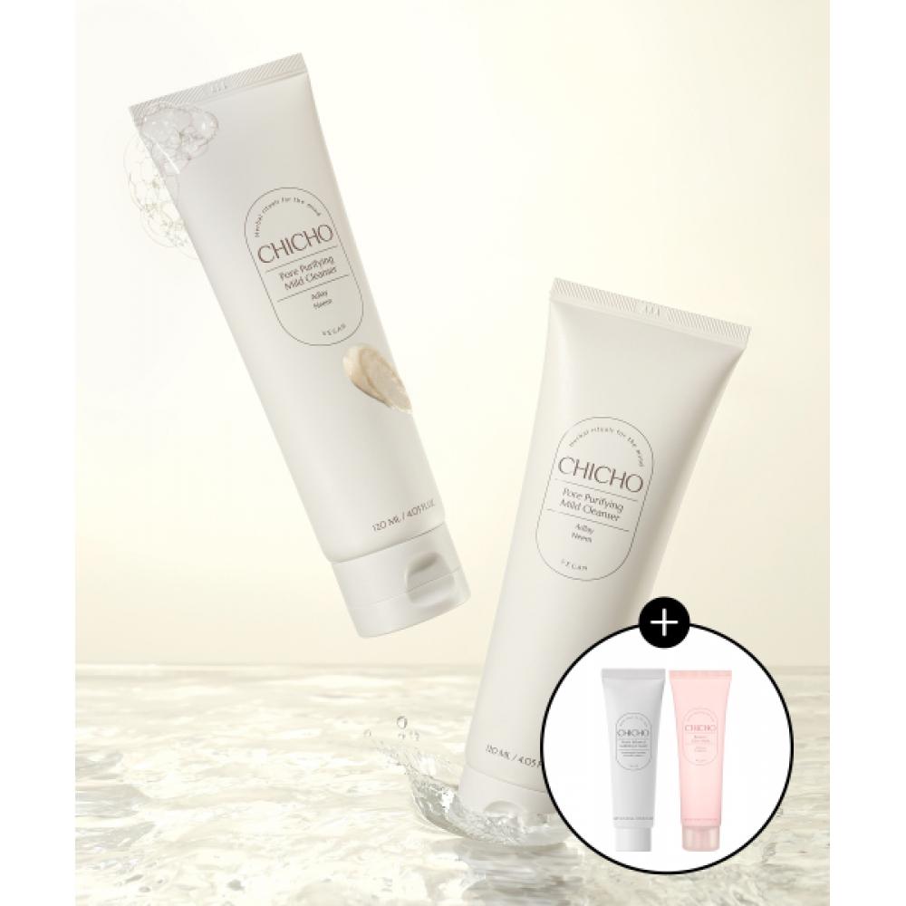 Chicho Pore Purifying Mild Cleanser 120ml X 2 Gift Herbal Infused Calming Cream Mini 10ml+bouncy Glow Mask 10ml