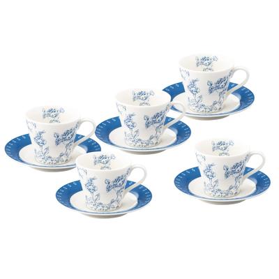 Laura Ashley Summer Rose Tea Set (8.5cm Diameter Coffee Cups & 15cm Diameter Saucers) - Set of 5. Stylish Rose-patterned Tea Set with Antique Floral