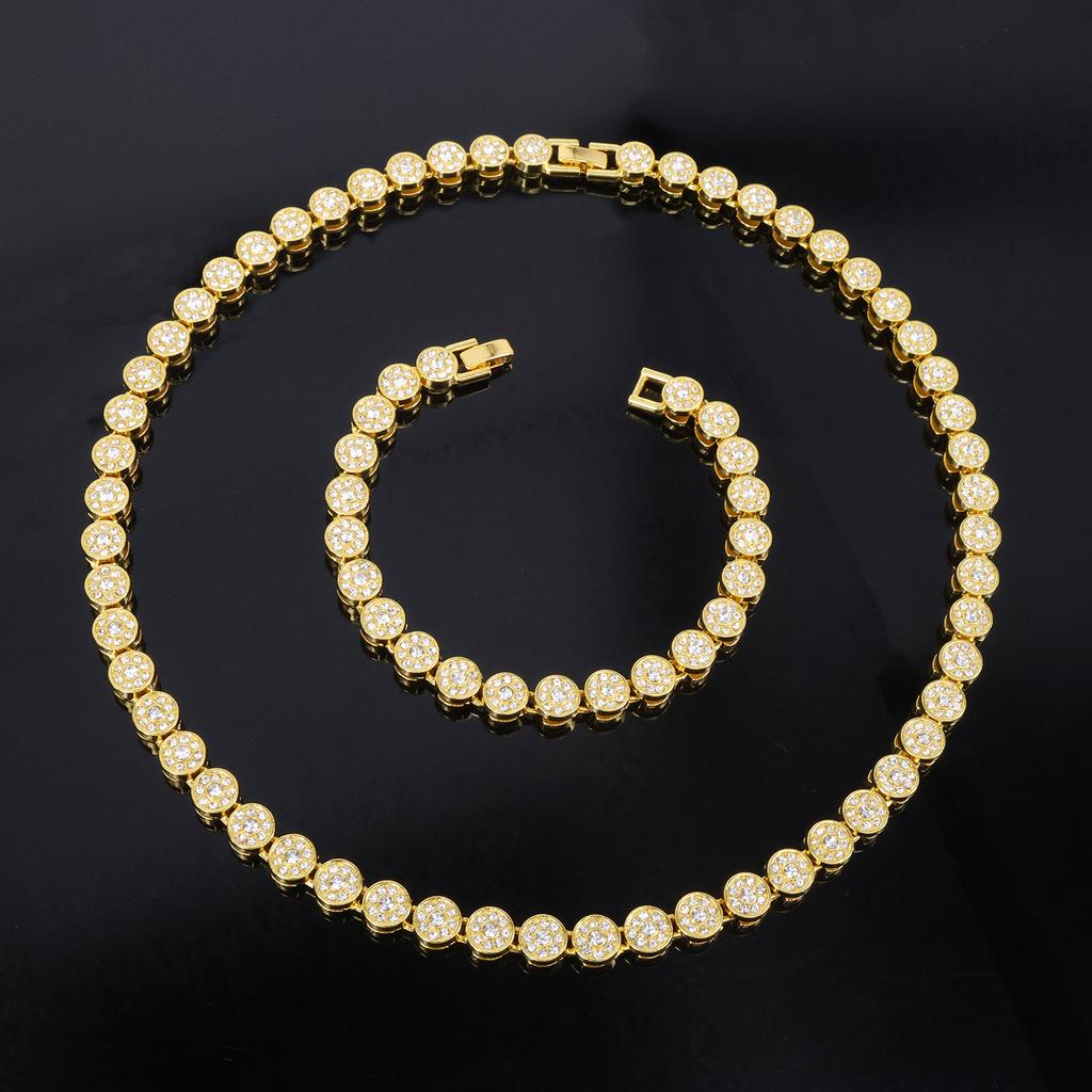 ZAKOL 45CM New Shiny Round Rhinestone Hip Hop Tennis Chain Bracelet Necklace Set for Women Men Jewelry Gift