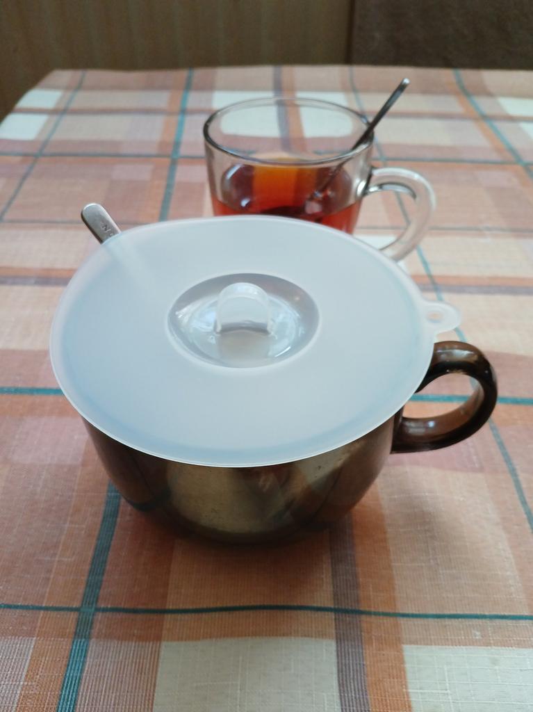 Suurepärane silikoonist kaas, matt läbipaistev, varem ostsin ühe väiksema kruusi jaoks. Sobib hästi tee aurutamiseks, ei jahtu nii kiiresti ja üldiselt on mugav midagi kinni katta