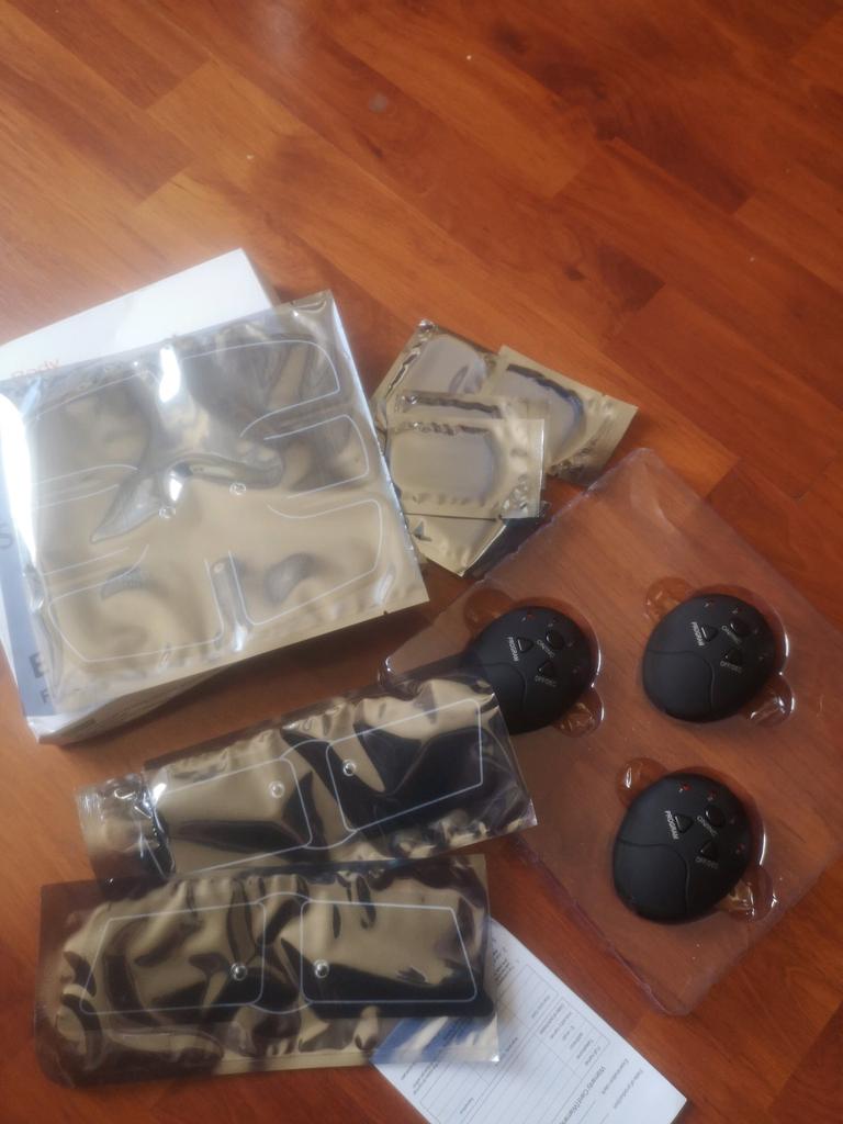 3 tk aku kontroller; 1 tk kõhu kleebis; 2 tk käe kleebis; 10 tk Ems pad
