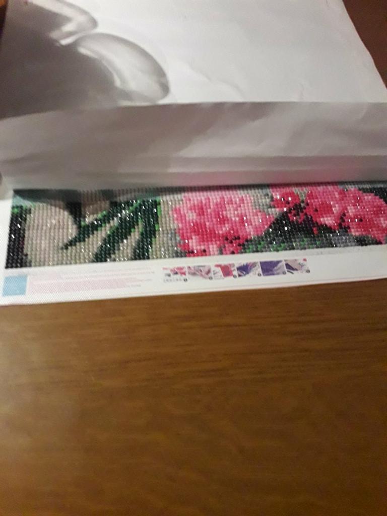 Ambalat prost, ca de obicei...🙄 Din fericire pânza nu are șanțuri de adeziv 😑. Probabil că după ce va sta întins se va îndrepta cât să nu se ridice pietrele pe denivelări. A venit foarte repede. Am făcut comanda pe 26 martie și a ajuns la mine azi, 7 aprilie, deci mai puțin de 2 săptămâni până în România. Pietrele par a fi toate, vom vedea la final dacă ajung sau nu, dar eu sper să nu fie probleme nici cu numărul nici cu calitatea lor. Din câte am văzut par a fi cât de cât egale. Oricum voi pune măcar poză dacă nu și filmuleț după ce îl voi face. Ca de obicei îmi rezerv dreptul de a comenta în timpul lucrului dacă e cazul. 😉 Una peste alta, recomand magazinul dar, ca de fiecare dată le atrag atenția la ambalare. Măcar pânzele de peste 30x40 cm să fie puse pe rolă. Cu cât e mai mare o pânză cu atât mai rău se strică la transport dacă nu e rulată. 🙄 Iar denivelările pânzei când e șifonată sunt ca și cum ar avea șanțuri de adeziv...😐 Dacă totul este OK și nu vor fi probleme iar rezultatul final îmi va plăcea, nu e exclus să dau 5 stele.😇 Actualizare: mi-a făcut plăcere să lucrez la această pânză 🤗. De aceea am ridicat de la 4, la 5 stele. A fost cu adevărat relaxant să îl fac, ceea ce caut de obicei Diamond Picture. Pentru asta dau bani pe pânze, pentru relaxare. Cu toate că au fost destule rebuturi, nu m-a deranjat având în vedere că au ajuns și au și rămas pietre destule. Nu am de reproșat decât ambalarea care lasă de dorit. În rest, recomand magazinul, mai ales că sunt multe (majoritatea) pânze la care plătești spațiul de lucru, nu toată pânza. Doar ambalarea...😒 Noroc că de obicei nu se fac dungi de adeziv ridicat. 🙏 Am cumpărat de la ei și voi mai cumpăra. 😇🌹