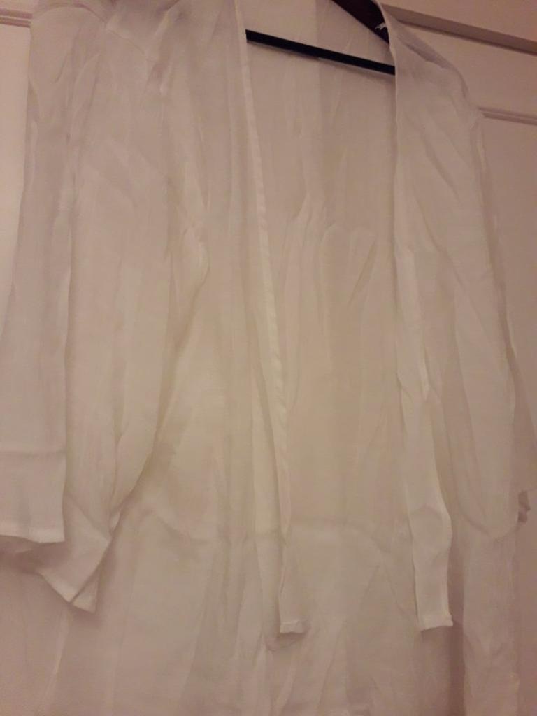 Väga hea väike jope, täiesti kerge kangas (35% polüester, 65% viskoos). Valges.. kannan suurust. 52/54 ja see sobib palju õhku!