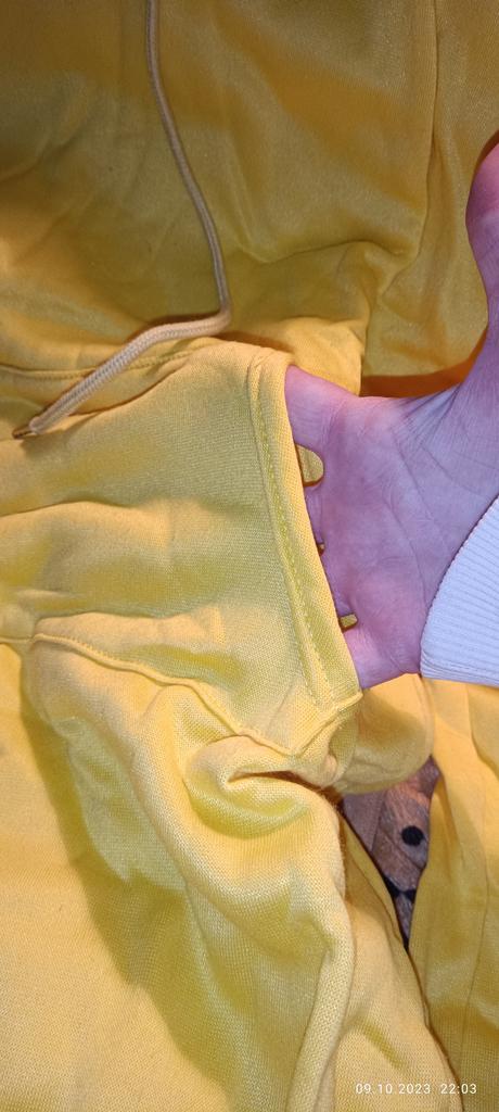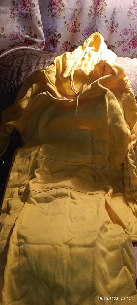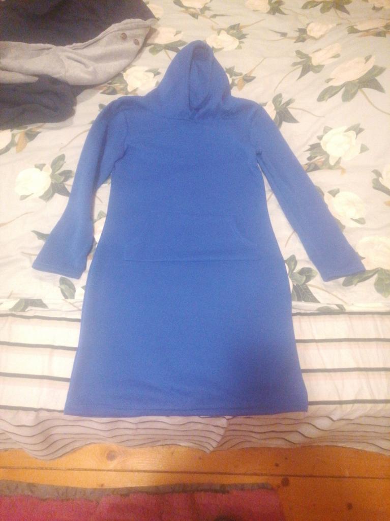 Kleit on suurustabelist palju väiksem, kangas on väga õhuke, seda ei saa peaaegu dressipluusiks nimetada, tasku on naljakas,