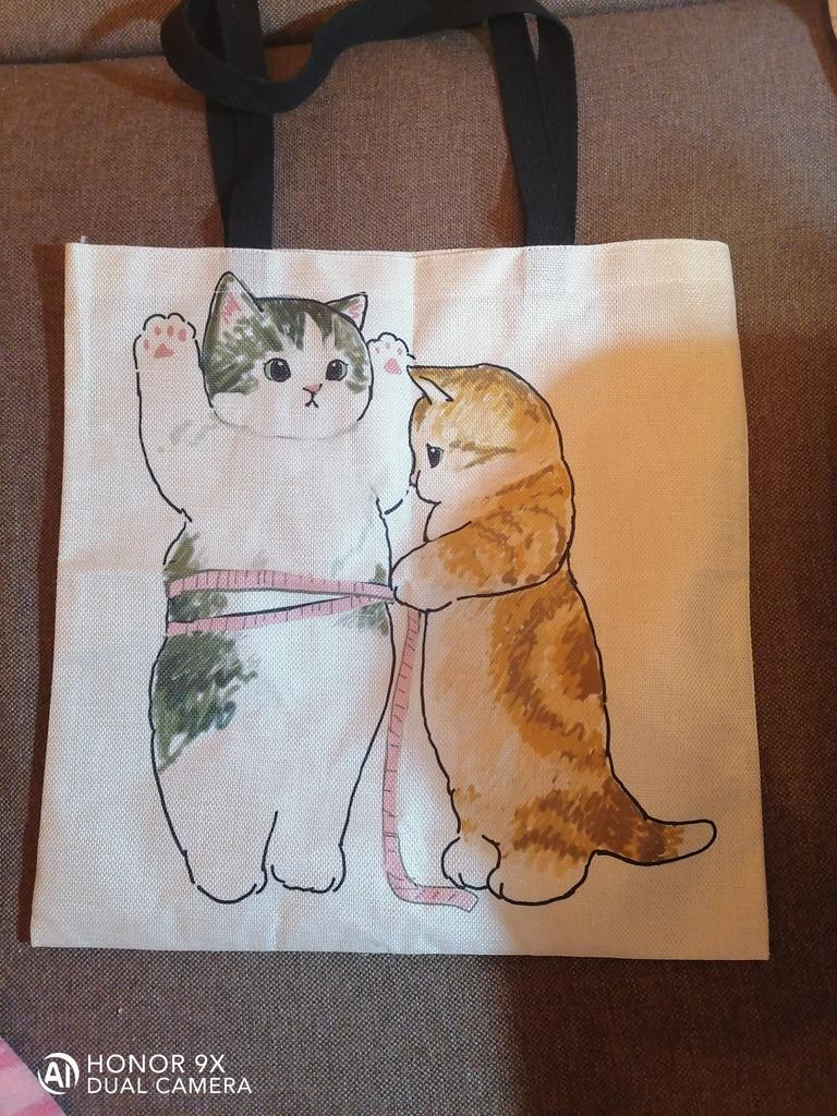 Akvarellvärviga käsitsi maalitud kandekotid Lillelised armsad kassidega õlakott naistele Naiste kontorikäekott Igapäevased vabaaja ostukotid