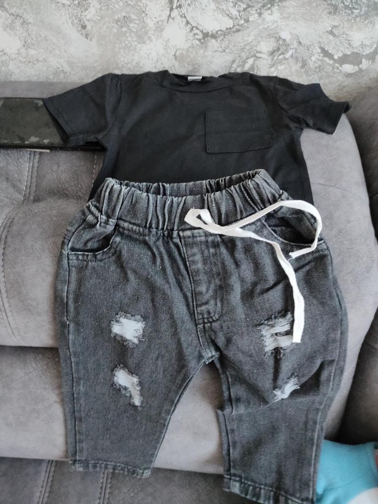 Väikelaste 2-osalised rõivad, ühevärvilised ümara kaelusega lühikeste varrukatega T-särgi topid + lõhki teksapükste teksapükste komplekt