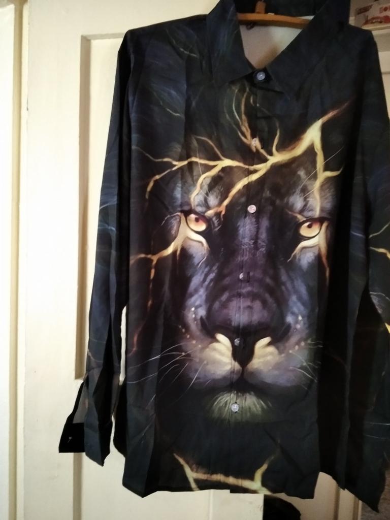 Lahe lõvivarrukaga särk🦁 unisex. Mõõtude järgi on veidi väiksem kui müüja mõõtude tabelis märgitud. Parameetritel 83/66/88 cm, kõrgus 151 cm, võttis S suuruse, istusin hästi, vabalt, nagu soovisin. Kangas on polüester. Tagakülg on valge, nagu ka nupud. Soovitan 💯%.