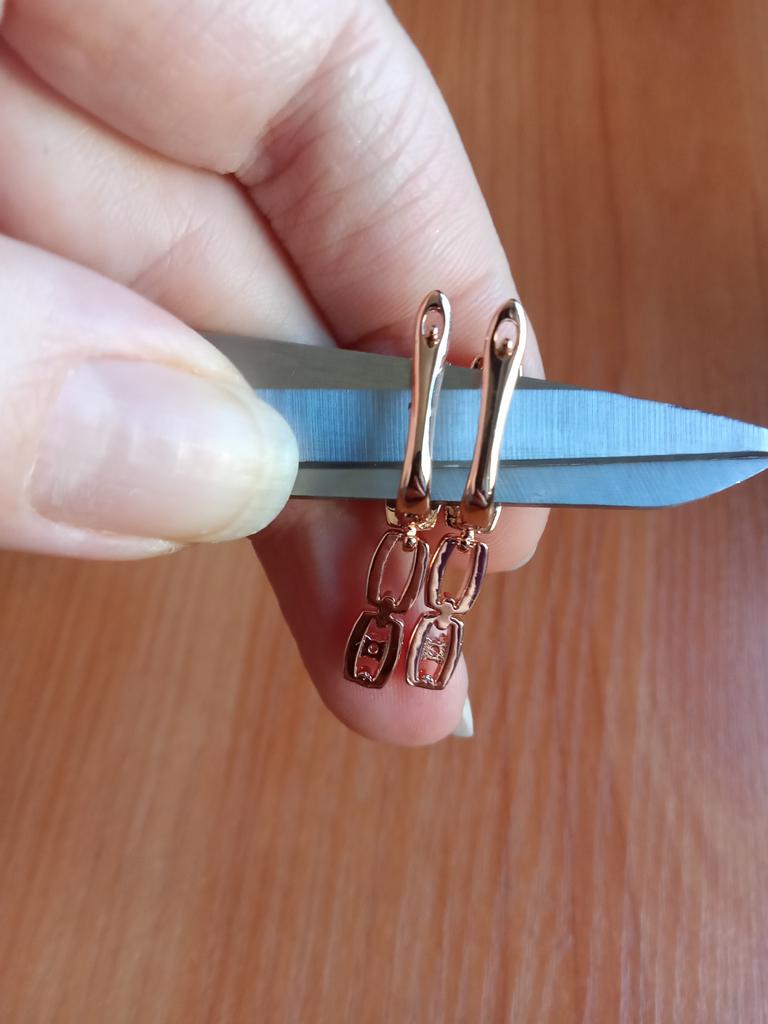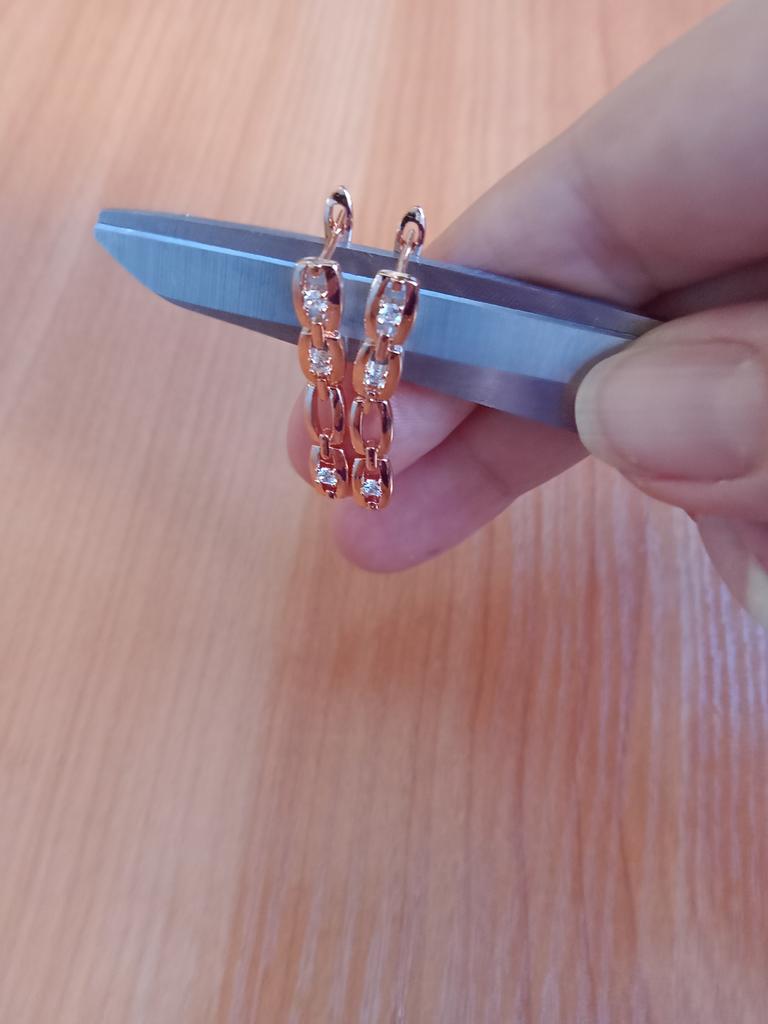 Kõrvarõngad "Ketid", 1 paar. Lukk: Inglise lukk. Värv: kuldne (roosa kuld). Pikkus on umbes 3,1 cm. Huvitava "keti" disainiga lahedad kuldsed kõrvarõngad. Näevad tõeliselt lahedad välja – mõõdukalt pikad, mitte ülekoormatud ebavajalike detailidega ning ülimalt läbimõeldud universaalse disainiga. Suurepärane pakend - plastkarp, mis kaitseb kõrvarõngaid transpordi ajal kahjustuste eest ja on hea koht nende kodus hoidmiseks. Kuid teabe puudumine kõrvarõnga sisepikkuse kohta (kus see läheb üle kõrvanibu) viis selleni, et tellisin need kõrvarõngad, mis osutusid minu kõrvanibu jaoks liiga väikeseks. Kahjuks ei saa ma neid selga panna ja kanda - kahju, sest kõrvarõngad on väga ilusad! Just see kahetsusväärne asjaolu põhjustas reitingu langemise. Need kõrvarõngad sobivad ideaalselt väikeste kõrvanibudega tüdrukutele ja kõikidele teistele kaunitaridele tuleb otsida hoopis teistsuguse mudeli kõrvarõngad, õnneks on müüjal neid suur hulk. ✅Kõrvarõngad vastavad täielikult müüja fotole ja kirjeldusele. Pakend on suurepärane. Müüja on usaldusväärne.