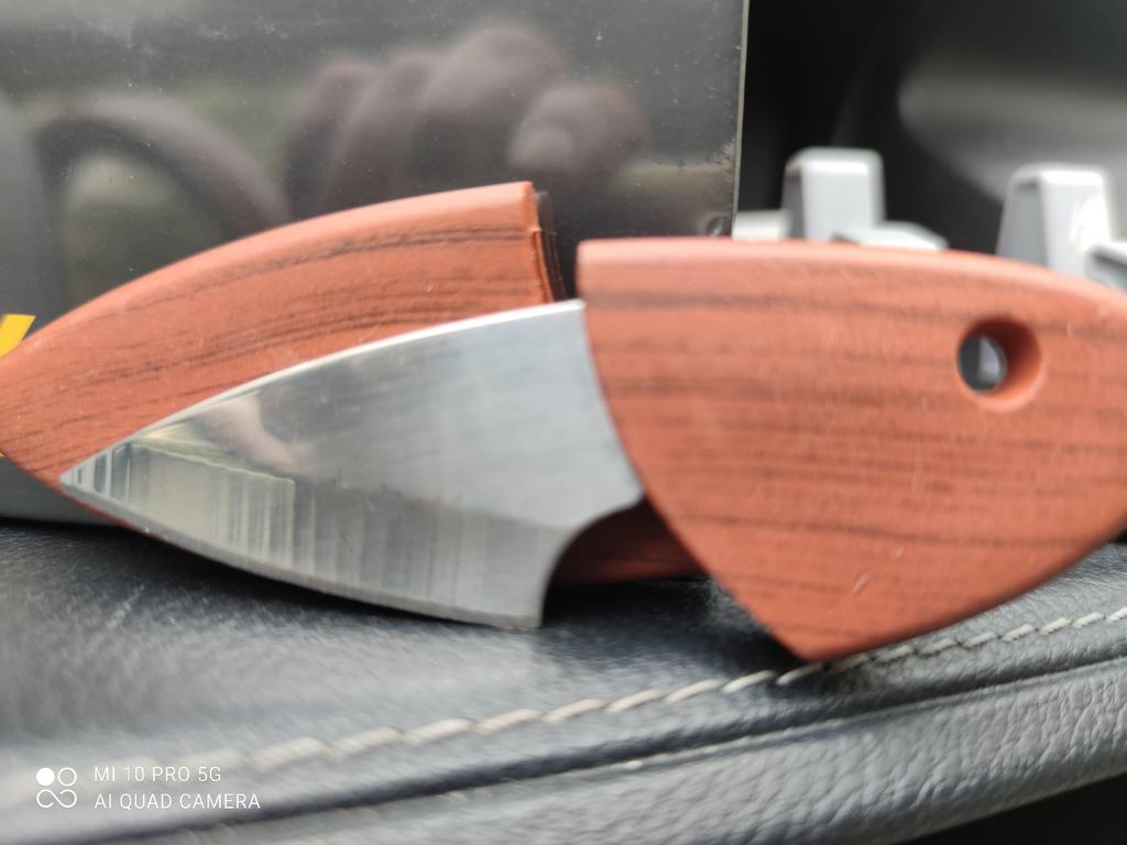 Väga terav, nelja sentimeetrine tera...kasulik väikeste sisselõigete jaoks ja võtmehoidjana