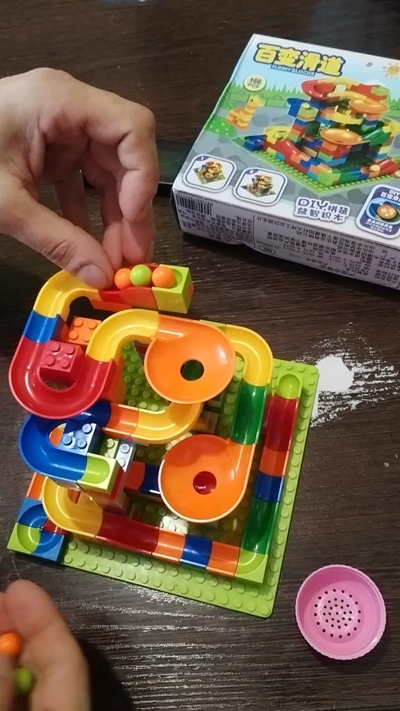 Tõesti suurepärane marmorjooks. Meie lapselaps on selle üle õnnelik. Kaunilt valmistatud ehitusklotsid ja sobivad suurepäraselt Legoga.