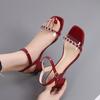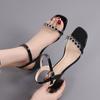 Casual Feature:Heel Sandals/Square Toe/Strappy Straps/Block Heeled/Open Toe/Ankle Wrap Heels/Mid Hight heels party dress shoes/beach/holiday/summer mule sandals
