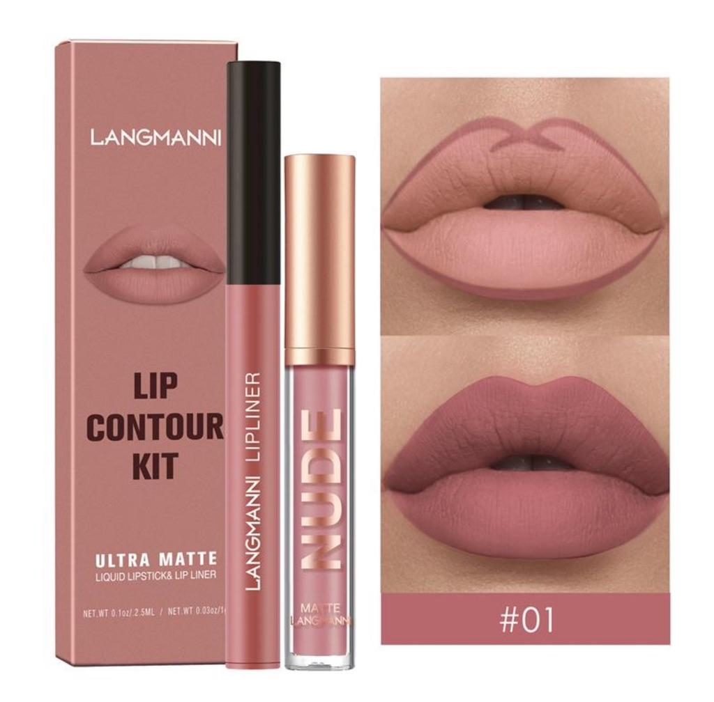 2-piece Lip Liner and Lip Gloss Combination Waterproof Long-lasting Velvet Nude Sexy Non-stick Matte Lipstick Lip Liner