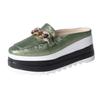 fashion Metal Chain Decor Chunky Platform Mules for Women 2024 Summer Thick Sole Wedge Slippers Woman Closed Toe Slip On Casual Slides