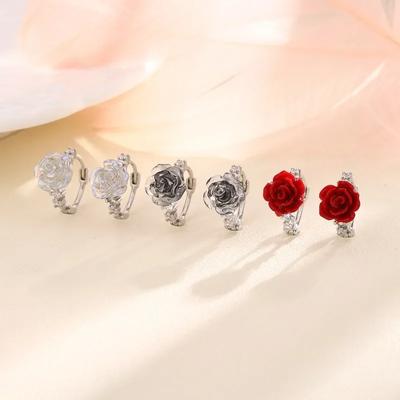 Peened kõrgekvaliteedilised punase roosi ringikujulised kõrvarõngad naistele