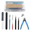 [Noakujuline viil 9 asendusteraga] Kolmnurksetel teemantteradel, mille koonus on 23° ja koonusega 45°, on igaühel üks arv #200, #400 ja #600. Mõlemal kahel ümarfailitüübil on arv #400. Lisaks on kaasas üks disainnoa tera, kokku 9 tükki. Tänu paljudele failitüüpidele saab seda hõlpsasti kasutada erinevates olukordades. 【Professionaalne spetsifikatsioon】 Võrreldes traditsiooniliste jäme eemaldamise tööriistadega kasutab see fail professionaalset galvaniseerimistehnoloogiat, mis tagab ühtlase abrasiivse tera, hea kulumiskindluse ja pikaajalise lõikejõu.. Kuna tera otsas saab teritada, saate hõlpsalt teha üksikasjalikke poleerimistöid sügavates kohtades, kuhu liivapaberiga on raske ligi pääseda. [Lihtne kasutada] Viilil on sama kuju kui disaininoal, mida olete harjunud kasutama, seega on seda lihtne kasutada ja seda saab kasutada poleerimiseks kitsastes ja sügavates kohtades. Isegi algajad saavad hõlpsasti poleerimistööd teha. 1 failihoidja, tsangide suurus 2,35 mm võlli jaoks (ligikaudne): 2,1-2,5 mm võll. [Toote omadused] 1. Tera on üliõhukesest karbiidist paksusega 0,4 mm, võimaldades sellel sujuvalt tungida peenvormitud toodete raskesti ligipääsetavatesse pragudesse. 2. Kuna failimustrit pole (poleerimissuund), poleerimisel saad seda vabalt liigutada nagu liivapaberit. 3. Tera mõlemal küljel on abrasiivsed terad, nii et saate seda kasutada, ilma et peaksite muretsema esi- ja tagakülje pärast! 4. Tera on terav ja võib lõigata ainult servast. [Toote kasutamine] See disain noakujuline viil on tööriist, millega saab hõlpsasti viilida kortsud ja vahed, mida on raske kasutada traditsiooniliste viilidega. Seda saab kasutada ka õrna tekstuuri töötlemiseks, soonte korrigeerimiseks pärast triipe, pinna viimistlemiseks ning mudelite ja kujundite üksikasjalikuks poleerimiseks. Samuti on lihtne korrigeerida kõveraid pindu ja soontega osi. See toetab ka kõvade plastide, alumiiniumi, messingi, vase jne jäme eemaldamist ja faasimist. tootenimi: Disain Noakujuline teemantviil Toote omadused;1. Üliõhuke, 0,4 mm paksune, mikronoakujuline elektrotehniliselt sadestatud teemantviil;2. Failijälgi pole (fikseeritud poleerimissuund) ja seda saab vabalt poleerida igas suunas Jah;3. Kolme tüüpi niidiloendeid: #200, #400 ja #600, mida saab kasutada olenevalt eesmärgist;4. Peeneteralised teemant-abrasiivterad tagavad ühtlase lõikepinna;5. Professionaalne elektrosadestustehnoloogia vähendab eraldumist ja tagab pikaajalise lõiketunde;6. Saab kasutada nii faili esi- kui tagaküljel. Rakendused: Mudelid jne. Figuuridetaili töötlemine, modelleerimine, plasti töötlemine, täppistöötlus, detaili viimistlus jne. Paki sisu: Viili korpuse hoidja *1;9 tera (Kaasas 9 tüüpi asendusterasid) Juhtum (terade hoidmiseks) *1;Kork *1;Disain noa tera *1;2,35 mm võlli tsang *1;