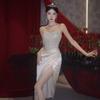 New women's temperament socialite style shiny split suspender dress